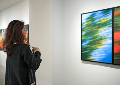 Aborder le paysage c’est risquer de sombrer dans l’écueil de la carte postale à moins de prendre en compte ce qui lui est contemporain : la vitesse et, son corollaire, le raccourci du temps et des distances ainsi que le changement des points de vue. Celui-ci peut alors être appréhendé soit à travers le filtre d’un pare-brise, l’écran d’un rétroviseur ou la vitre d’un train, voire le hublot d’un avion.
