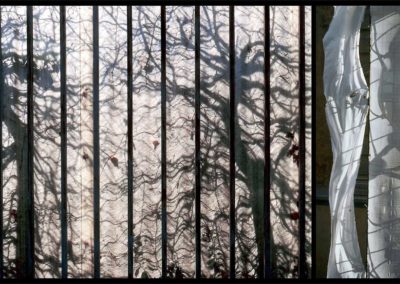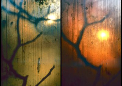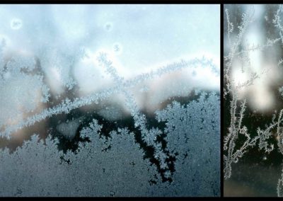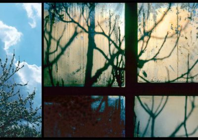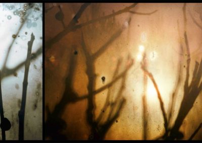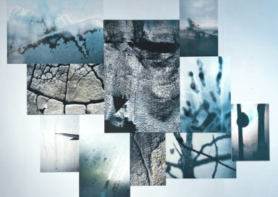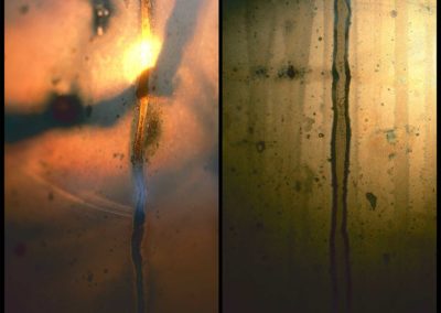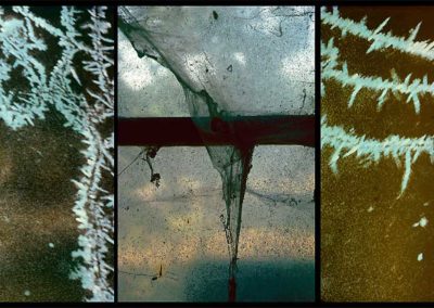 La photographie fixe ainsi ce qui s’apprête à disparaître plus ou moins rapidement à travers, ici la buée, ailleurs la poussière, là l’empreinte du givre sur une vitre ou la fragilité d’une toile d’araignée. Autant d’éléments qui s’interposent entre le regard et l’horizon – un paysage à travers une fenêtre ruisselante de pluie ou encore la présence d’une figure dans le flou de la prise de vue – provoquant alors une mise à distance génératrice d’imaginaire.
