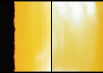 Parti pris prolongé dans les œuvres Aux confins, Absence et In extremis où, ce n’est plus la capture d’un premier plan qui soustrait le sujet à la vue, mais la pellicule photographique elle-même, sa propre limite, qui laisse libre cours à un hors-champ à la fois supposé, abstrait et pictural.